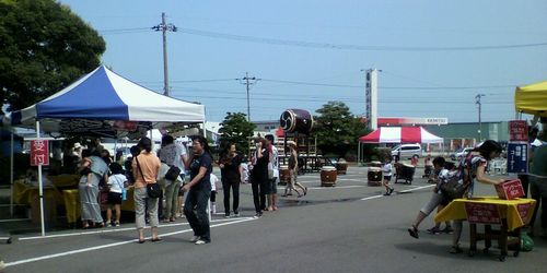 さて、炎熱ふりそそぐ8月1日、浅野太鼓では第3回目の「楽市楽座」をおこないました。長引く景気低迷の影響を受けて、人も地域も企業もどことなく沈滞ムードに押されがちな昨今、浅野太鼓の活性化と地域の話題づくり、そして何よりも従業員の意気高揚を目的に企画したこの催事。