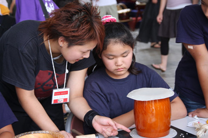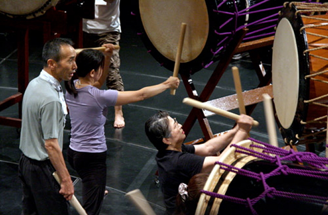 それからおよそ1週間。同じく東京を舞台に、東京新聞、財団法人児童育成協会(青山劇場、こどもの城)との共催で、今年も「TAIKO JAPAN」を開催。和太鼓の鑑賞と体験、チャレンジを大きな目標に、太鼓コンサート「青山太鼓見聞録」「太鼓見聞録外伝」、太鼓の表現を競う「東京国際和太鼓コンテスト」、さまざまな講座で和太鼓を学ぶ「和太鼓カレッジ」を4日間にわたって繰り広げました。「青山太鼓見聞録」では、鼓童の藤本吉利さんや島根の今福優さん、奈良の「舞太鼓あすか組」さん、東京の「三宅島芸能同志会」さんなど熟練の打ち手が集まり、この日だけの選りすぐりの演目を披露。またコンテストでは組太鼓部門と大太鼓部門に合わせて30組が出場し、それぞれに熱演の汗を流しました。結果として、見事に賞を射止めた人がいる一方、悔し涙を流して帰途についた人もいますが、この経験から学んだことの大きさは、きっといつか演奏に反映されるはず。どうか新たな闘志を燃やして、次のステップにチャレンジしてほしいものです。