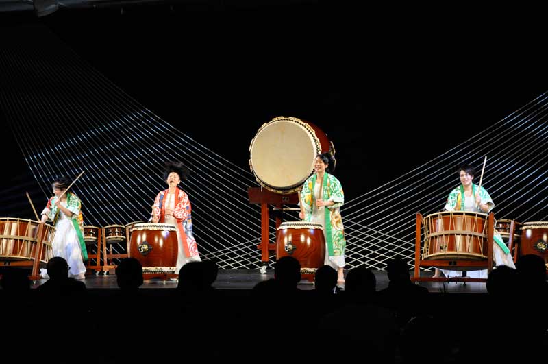 というのも、前日の26日、「地下朱美演奏活動30年&焱太鼓結成25周年記念ディナーショー」を開催したばかり。今から30年前に初めて地下朱美と出会い、その5年後に女3人の太鼓チームを組み立て、「炎太鼓」と名づけたチームのメンバーも世代交代を重ねて地下朱美を筆頭に池上静江、千田京子、池田美由紀、東海林恵、山本綾乃、木下千恵子、山田瑞恵、東川裕菜とのべ9人を数え、またファッションデザイナーの山本寛斎さんをはじめ、写真家の故稲越功一さん、照明デザイナーの藤本晴美さん、詩人の大岡信さん、舞踏家の麿赤兒さんなど、焱太鼓の存在を通じて知己を得たたくさんの人々、そうした人との有難いめぐり逢いが次から次に思い出されてくるのでした。