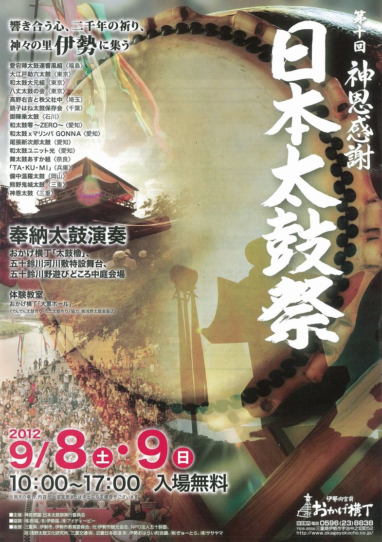 先々週末の8日、9日、三重県で恒例の「神恩感謝日本太鼓祭」が開催されました。恒例といっても、今年は昨年までと運営組織やスタッフなどが変わり、新しい態勢の中での開催。出演団体の顔ぶれも大きく変わり、打ち込みの太鼓あり、いかにも「今どきの若者」というリズム偏重の太鼓あり、長く太鼓を見てきた私には、今後の展開も含めて、いろいろ考えさせられる祭りでした。この太鼓界、何が残り、何が消えていくのか、しっかり目を見開いて見届けたいものです。
