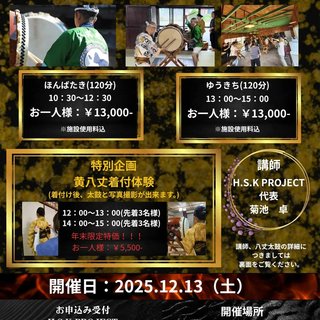 2025年12月13日(土) ほんばたき(10:30~12:30)/ゆうきち(13:00~15:00/黄八丈着付体験12:00~13:00、14:00~15:00 |
