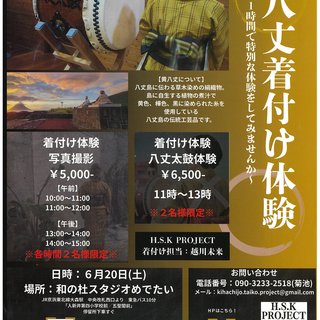 | 料 金 | 着付け体験写真撮影 5000円、着付け体験八丈太鼓体験 6500円 |